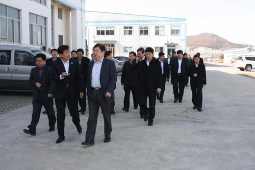 近日、省海洋と漁業庁長官王守信會社の調査研究。威海市委常任委員會の副市長湯光運、威海市海洋と漁業局局長王煥孟、環翠區委員會の書記林紅玉考察に同行し調査。王庁長官の一行はまず見學したグループ會社金琳食品加工園サンプルブースを聞いた李建忠
