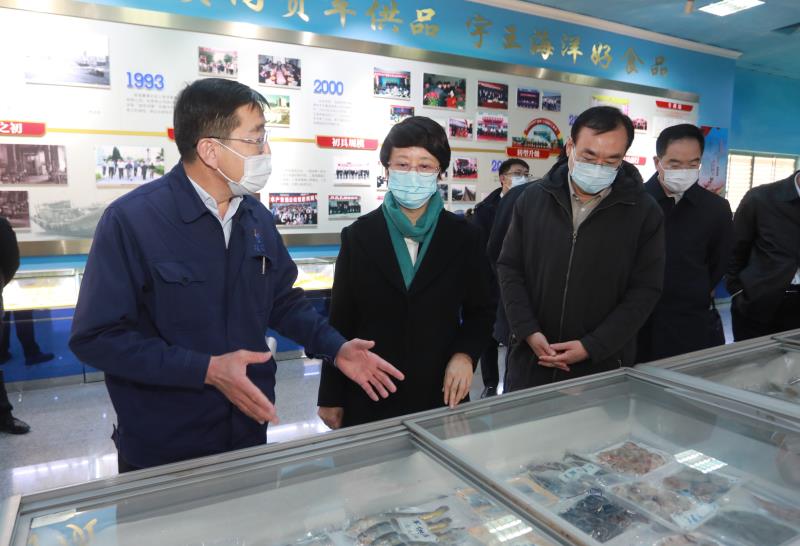 孔凡萍市長(zhǎng)一行走進(jìn)宇王集團(tuán)水產(chǎn)品加工示范企業(yè)宇祥工廠,通過觀看監(jiān)控了解工廠生產(chǎn)加工全過程,聽取宇王集團(tuán)加強(qiáng)食品安全和冷鏈管控工作匯報(bào),得知水產(chǎn)品出口日本市場(chǎng)并受到日本消費(fèi)者認(rèn)可時(shí),孔市長(zhǎng)給予表?yè)P(yáng)。隨后孔市長(zhǎng)參觀宇王集團(tuán)海洋生物館產(chǎn)品展示大廳,隋樹武邊走邊介紹宇王集團(tuán)近幾年軍民融合工作開展情況及下步工作計(jì)劃安排。