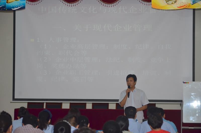 2016827日上午,宇王集團在海洋生物館二樓大會議廳舉行管理干部培訓,公司全體管理干部參加培訓。威海晚報前編輯部鞠世強主任擔任主講。培訓上,鞠主任對中國傳統(tǒng)文化中的儒家、道家、墨家思想進行了講解,結(jié)合現(xiàn)代企業(yè)管理,深入闡述了管理干部在企業(yè)中應當展現(xiàn)的素質(zhì)與方法,此次培訓規(guī)范了公司管理干部的責任意識,進一步維護了公司的管理水準。
