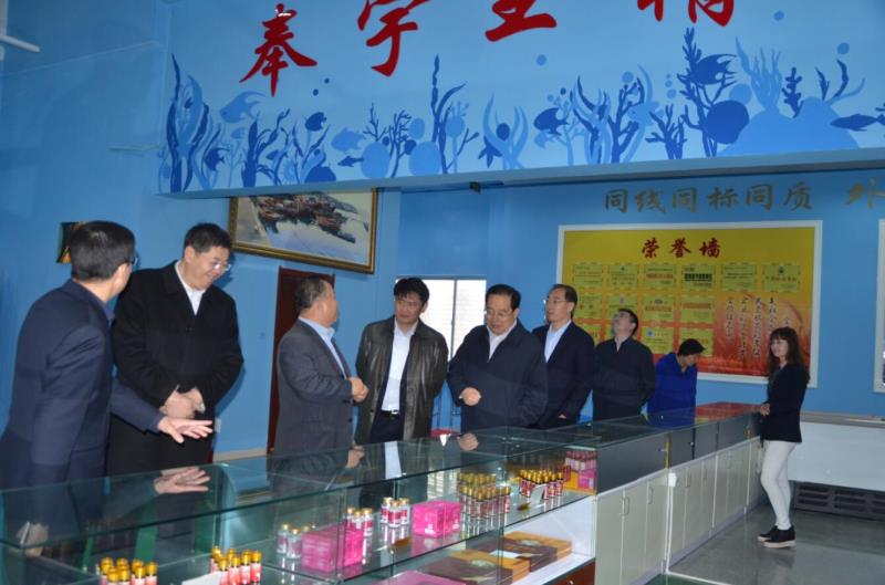 趙長勝一行聽取了苗強董事長的情況介紹,參觀了海洋生物生產車間,詳細了解了企業魚鱗中提取膠原蛋白及其功能肽成果轉化與產業化項目。海洋經濟創新發展區域示范項目是由財政部、國家海洋局聯合組織實施,旨在發展海洋生物等戰略性新興產業,宇王集團的魚鱗中提取膠原蛋白及其功能肽成果轉化與產業化項目被確定為海洋經濟創新發展區域示范項目,獲得國家資金扶持。趙長勝充分肯定了宇王集團在海洋經濟創新發展區域示范項目取得的成效,希望進一步加快推進海洋科技成果的轉化及產業化應用,積極推動區域示范工作深入開展,促進威海海洋經濟再上新臺階。