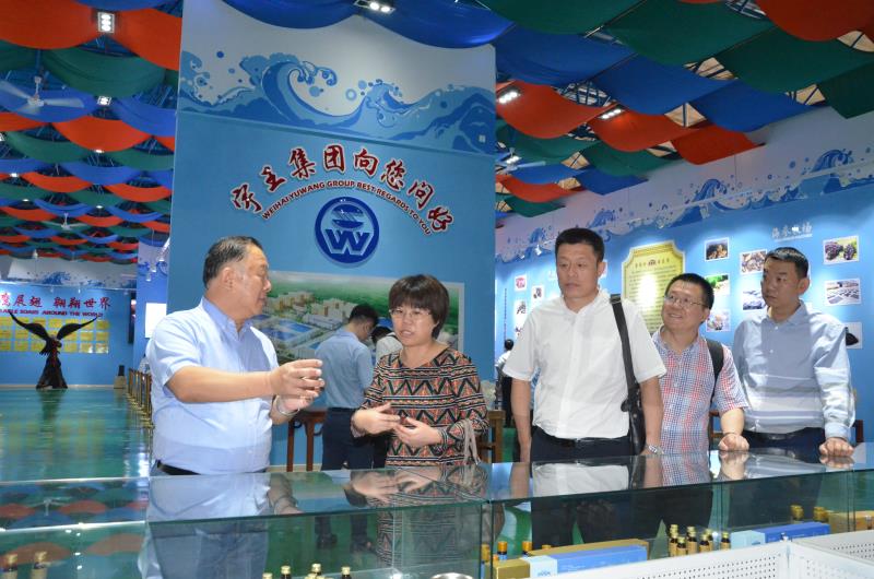 杜正芹一行先后參觀了宇王集團海洋生物蛋白、海藻多糖生產車間、研發中心、海洋館。邊參觀邊對宇王集團的食品管理、加工過程、產品質量等詳細詢問,對宇王集團全面加強質量管理、執行同線同標同質標準予以高度認可。